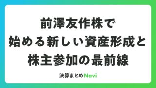 前澤友作株で始める新しい資産形成と株主参加の最前線 前澤友作氏が推進する前澤友作株は、株式投資の新しい形として注目を集めています。この取り組みは、誰もが簡単に株主になれる仕組みを提供し、個人資産形成と経済活性化を促進するものです。ZOZOの創業者として知られる前澤氏の経験を活かしたプロジェク... 決算書: 2026.03.14 決算書