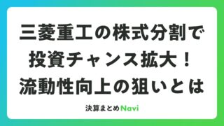 三菱重工の株式分割で投資チャンス拡大!流動性向上の狙いとは 三菱重工業株式会社(以下、三菱重工)は、近年積極的な株式分割を実施し、株主還元を強化する姿勢を鮮明にしています。特に2024年4月1日に行われた1株を10株に分割する大規模な措置は、投資家の注目を集めました。この記事では、三菱重工の株式分割... 決算書: 2026.03.29 決算書