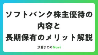 ソフトバンク株主優待の内容と長期保有のメリット解説 ソフトバンク(9434)の株主優待は、普通株式を1年以上かつ100株以上継続保有する株主を対象に、PayPayマネーライト1,000円分を進呈する制度です。この優待は、株主の皆さまに長期保有のメリットを感じていただくことを目的としており、通... 決算書: 2026.04.11 決算書