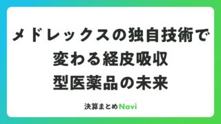 メドレックスの独自技術で変わる経皮吸収型医薬品の未来 株式会社メドレックス(証券コード:4586)は、東証グロース市場に上場する医薬品開発企業で、独自の経皮吸収型製剤技術を武器に、新しい剤型の医薬品を生み出しています。高齢化社会の進展に伴う患者ニーズに応えるマイクロニードル技術など、先進的な研... 決算書: 2026.04.12 決算書