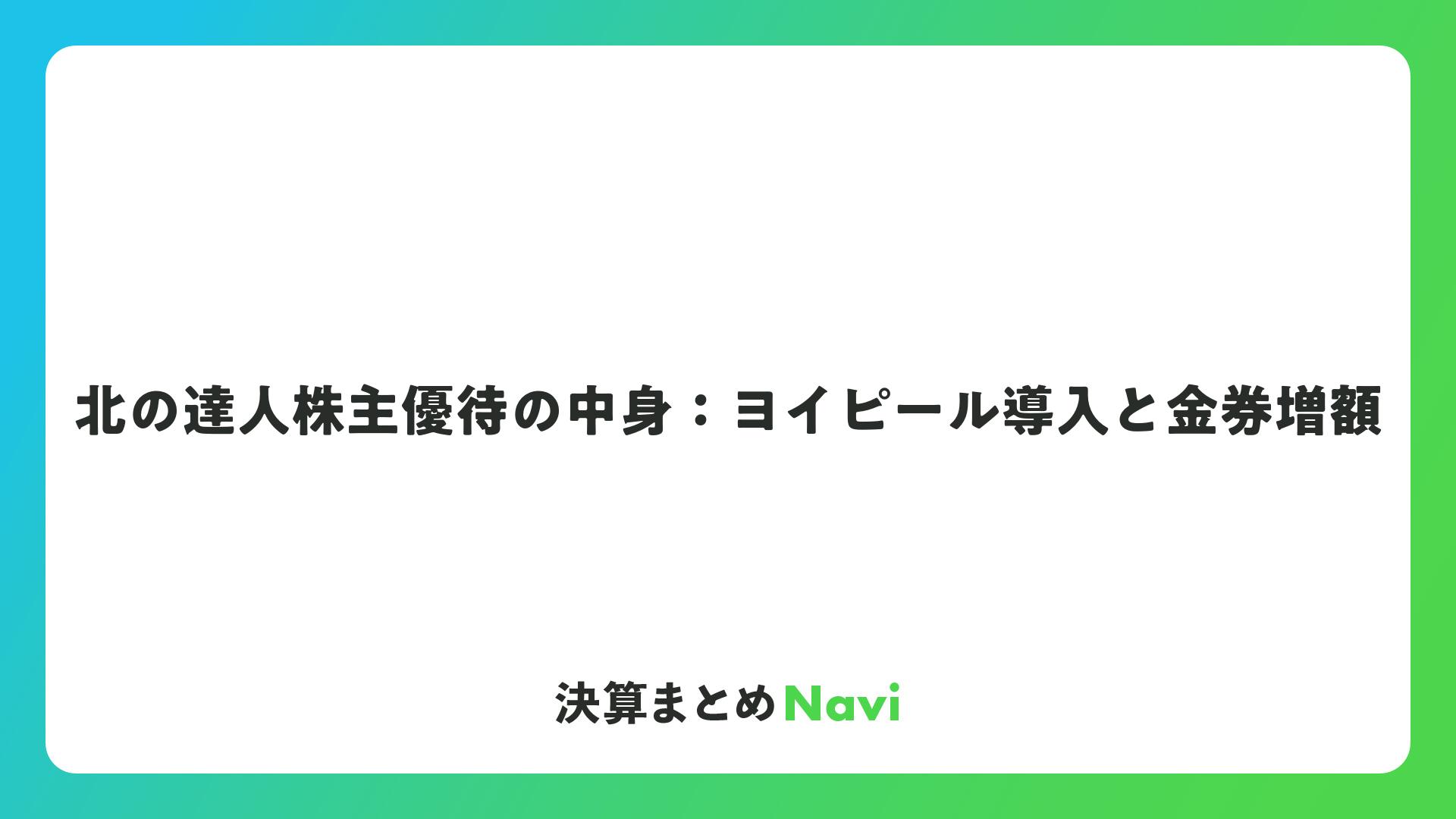 北の達人株主優待の中身:ヨイピール導入と金券増額をまとめました