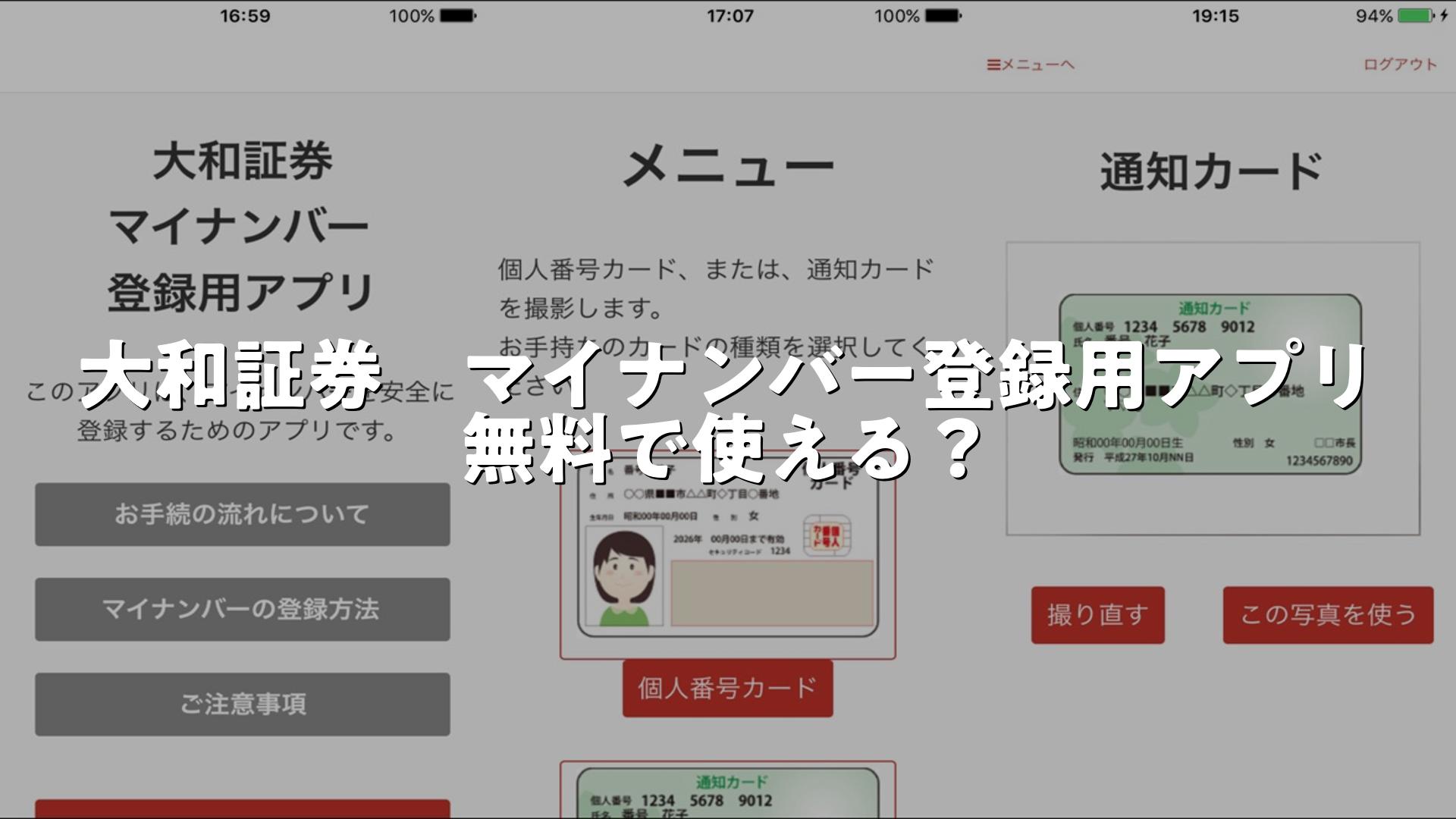 大和証券 マイナンバー登録用アプリの口コミ・無料で使える?ついてまとめました