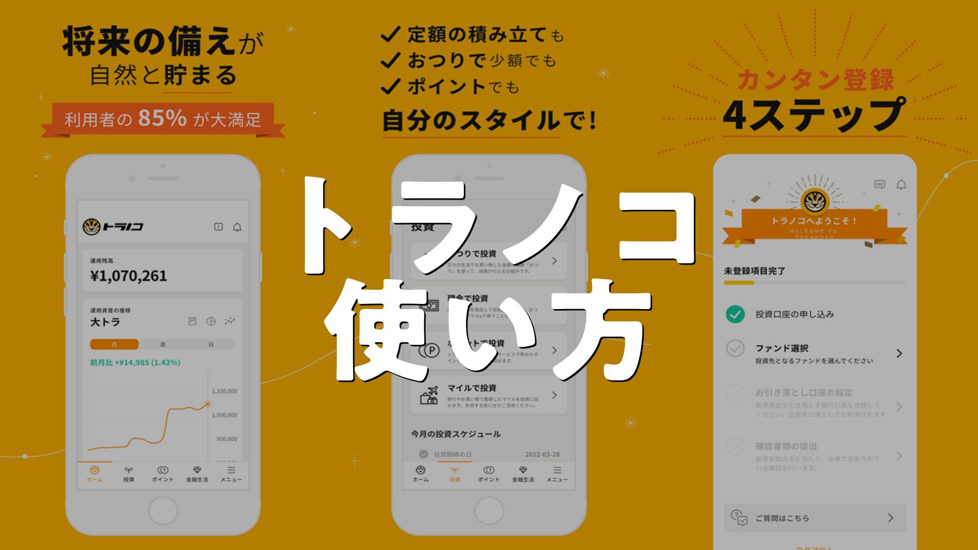 トラノコは、日々の生活の“ついで”で自然に資産形成できる投資アプリです。おつりやポイント、歩数連携などで少額から自動的に投資でき、3つのファンドから選ぶだけで世界分散投資が可能。難しい手続きや売買の知識がなくても続けやすく、学生割やポイントを使った投資など気軽に始められる点が魅力です。