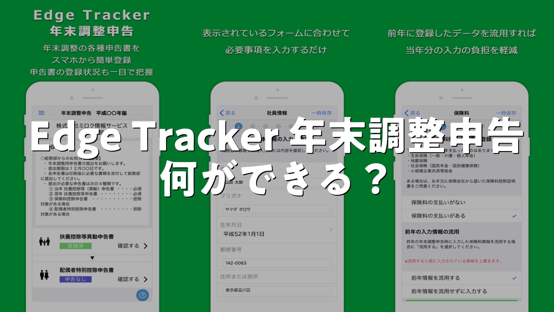 Edge Trackerは年末調整の電子化に必要な入力・画像添付・ERP連携といった基本機能を備え、効率化の実績もあるアプリです。