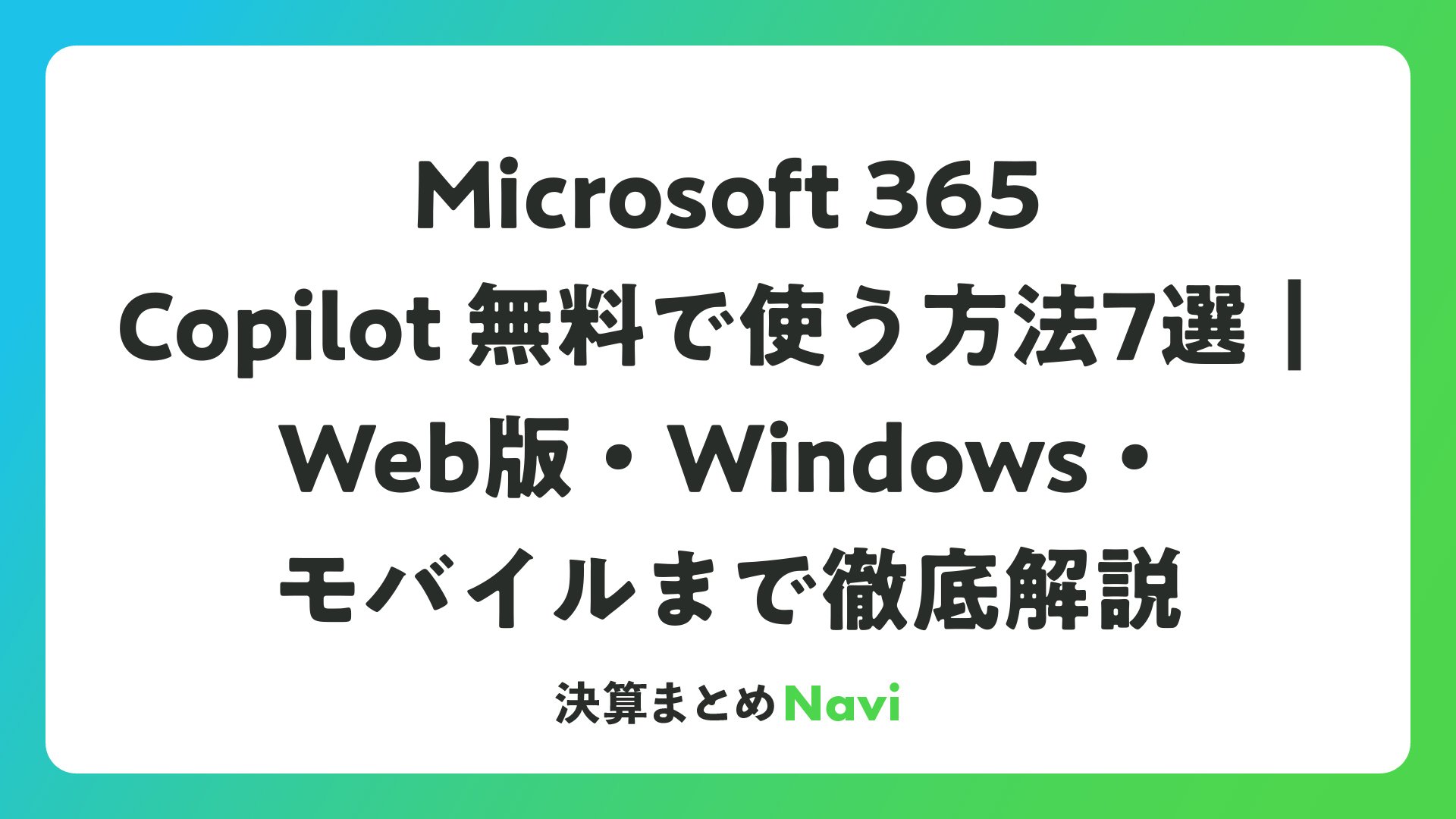 本記事では、無料でCopilotを使いこなすための7つの方法を、特徴・料金・メリット・おすすめの人という切り口で整理して紹介します。さらに記事後半では、全方法を一覧で比較できる表と、目的別の選び方も掲載しました。「まずは無料でAIを試したい」「仕事の効率化をコストゼロで始めたい」という方は、ぜひ最後までご覧ください。