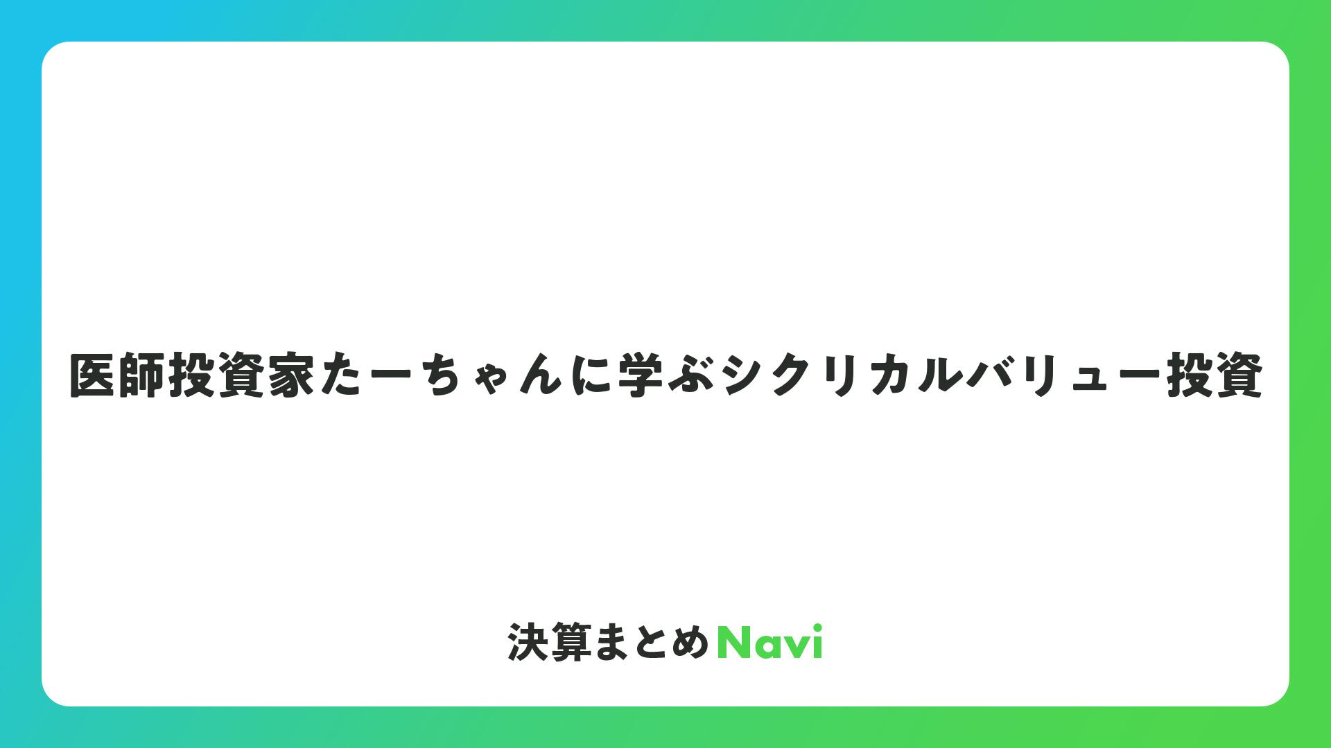 医師投資家たーちゃんに学ぶシクリカルバリュー投資をまとめました