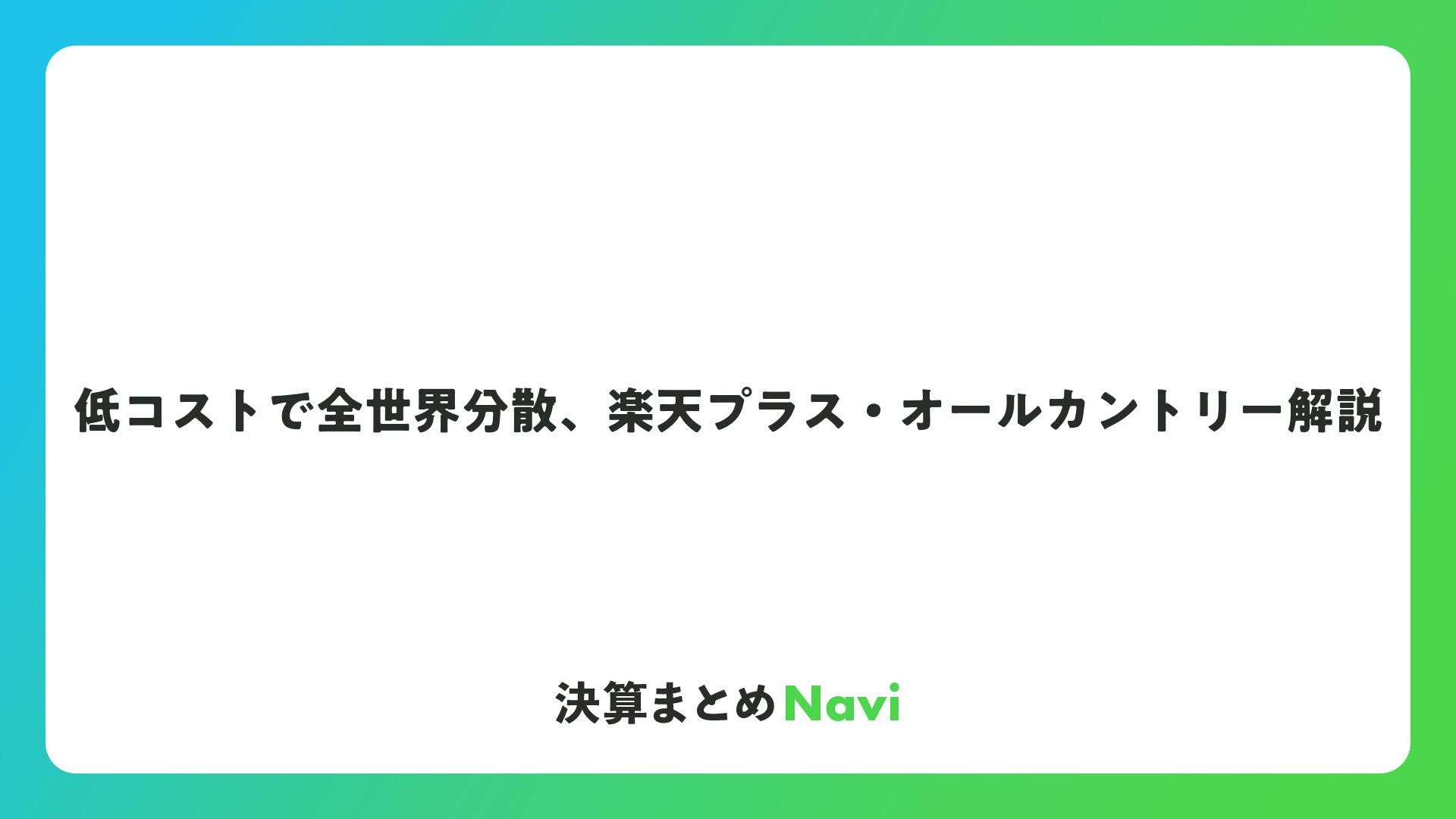 低コストで全世界分散、楽天プラス・オールカントリー解説をまとめました