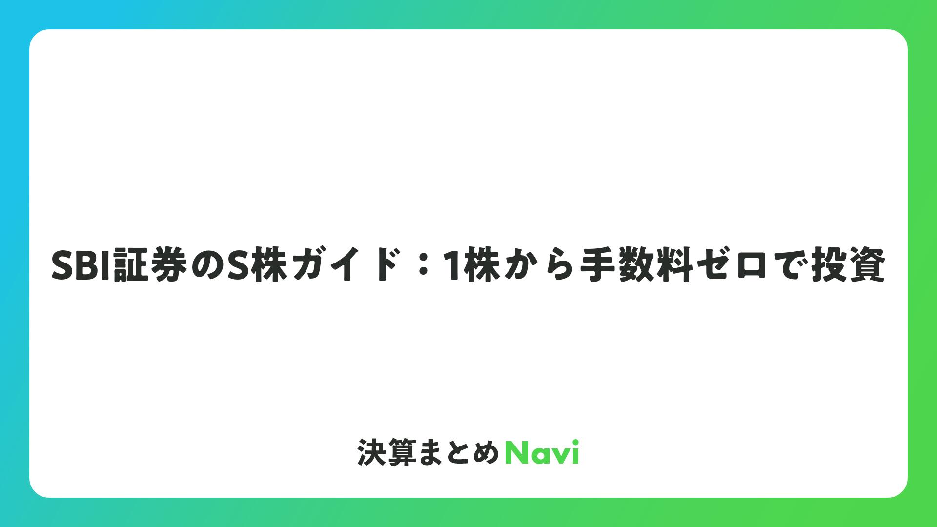 SBI証券のS株ガイド:1株から手数料ゼロで投資をまとめました