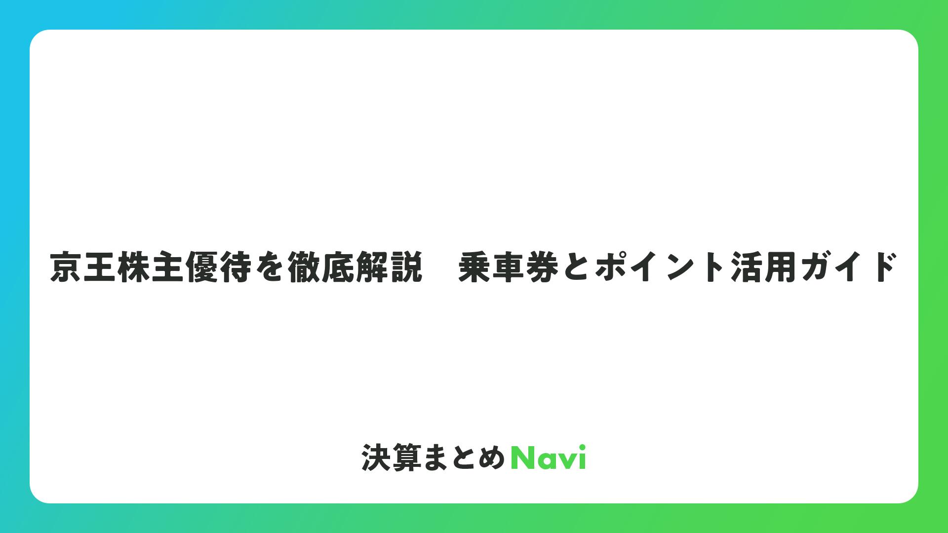 京王株主優待を徹底解説 乗車券とポイント活用ガイドをまとめました