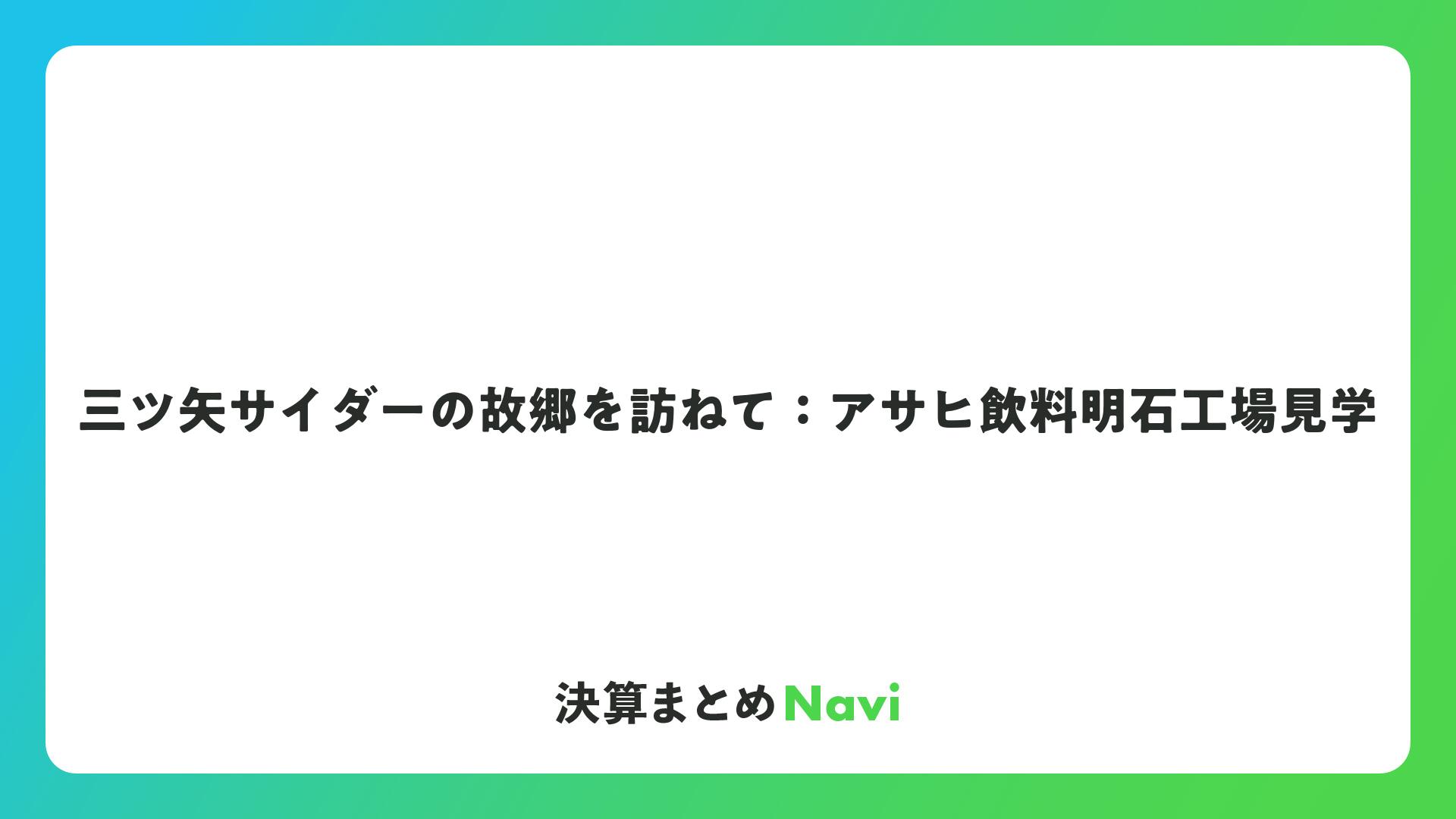 三ツ矢サイダーの故郷を訪ねて:アサヒ飲料明石工場見学をまとめました
