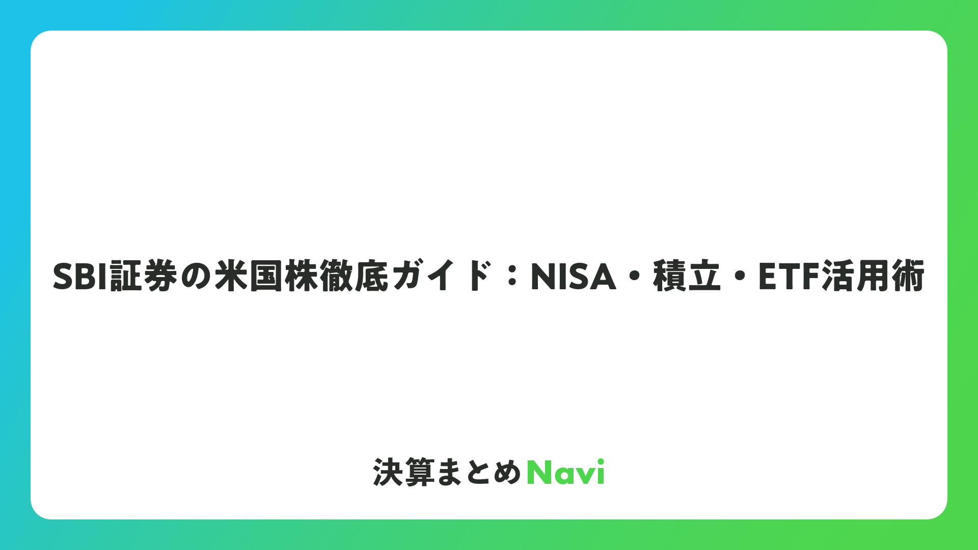 SBI証券の米国株徹底ガイド:NISA・積立・ETF活用術をまとめました