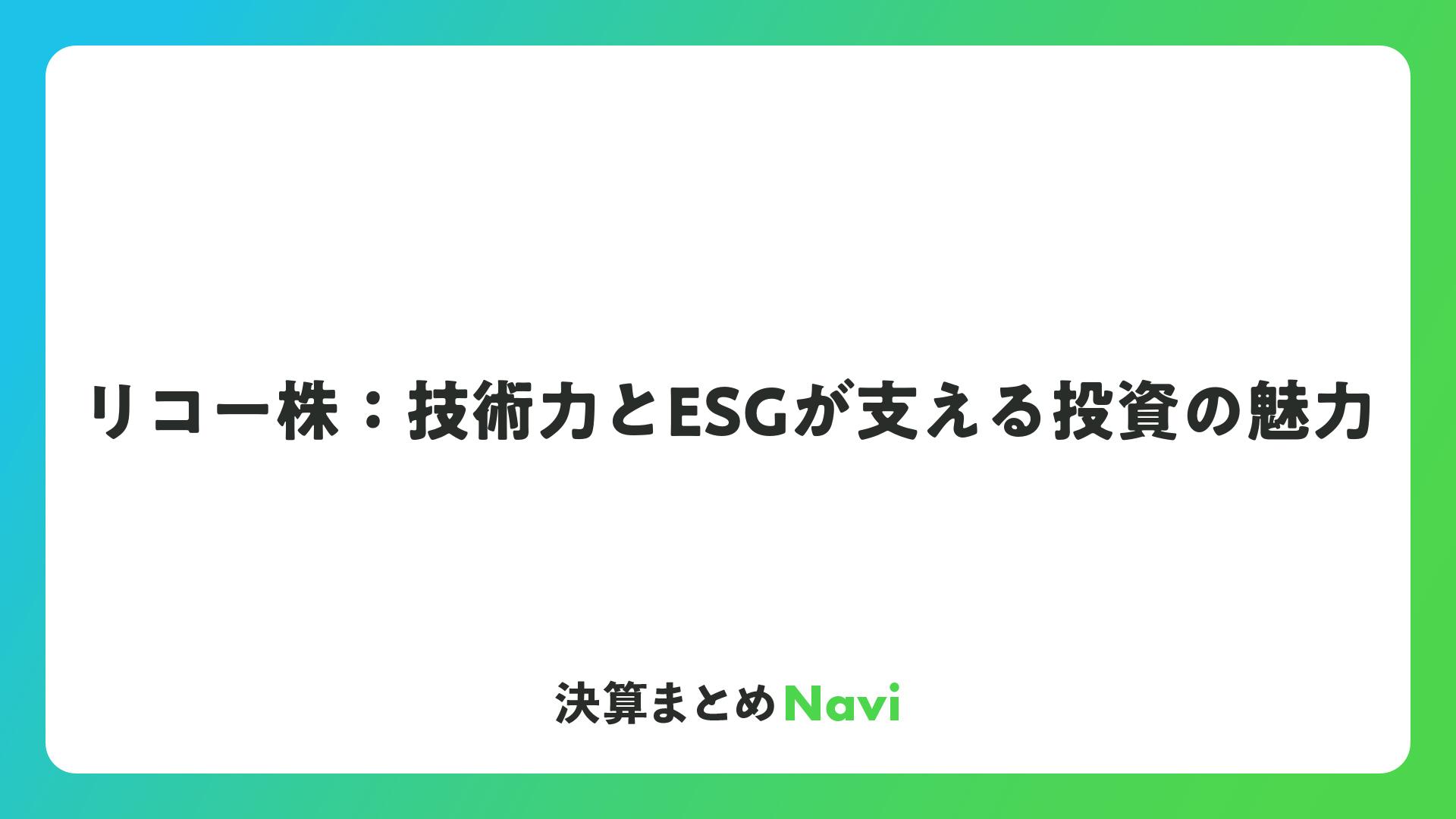 リコー株:技術力とESGが支える投資の魅力をまとめました