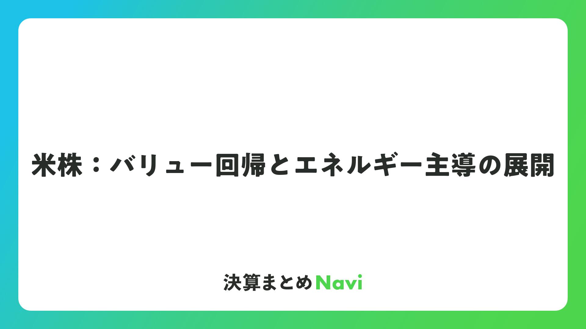 米株:バリュー回帰とエネルギー主導の展開をまとめました