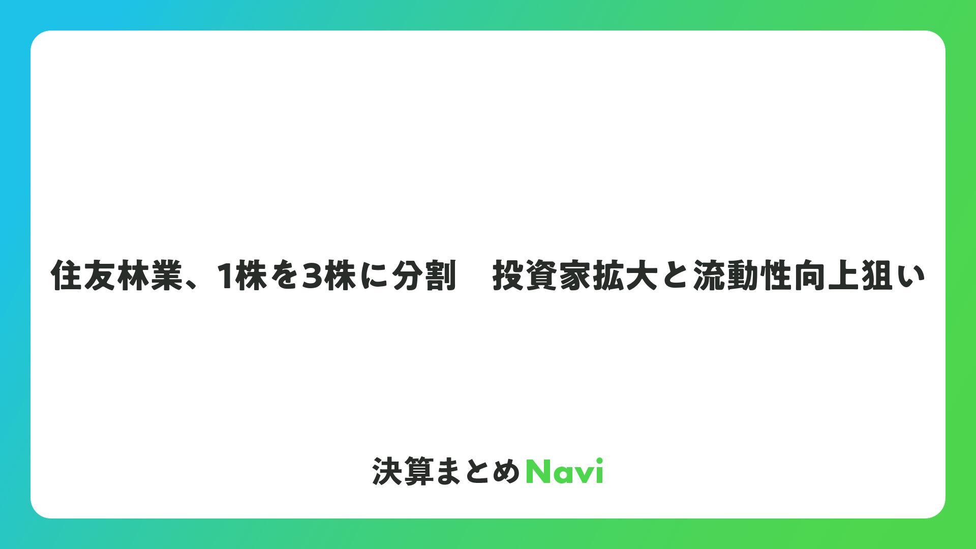 住友林業、1株を3株に分割 投資家拡大と流動性向上狙いをまとめました