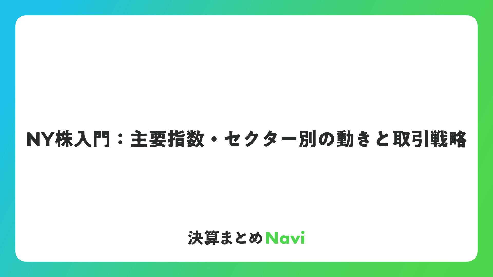 NY株入門:主要指数・セクター別の動きと取引戦略をまとめました