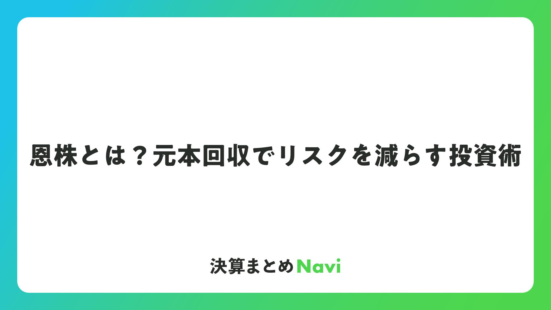 恩株とは?元本回収でリスクを減らす投資術をまとめました
