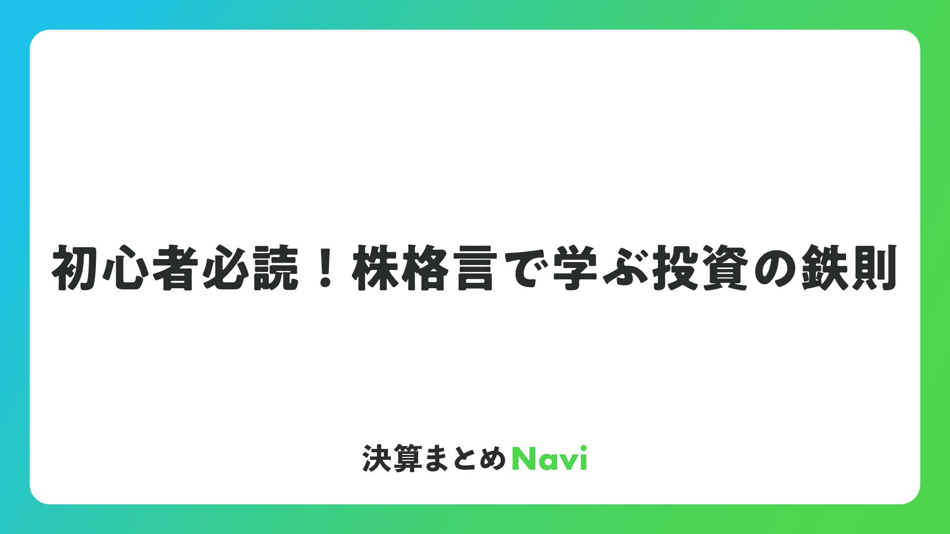 初心者必読!株格言で学ぶ投資の鉄則をまとめました