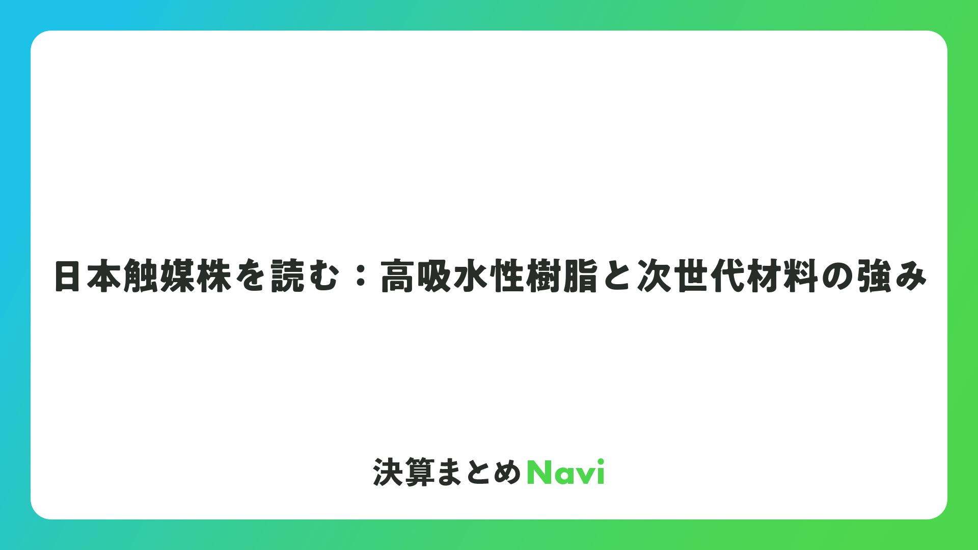 日本触媒株を読む:高吸水性樹脂と次世代材料の強みをまとめました