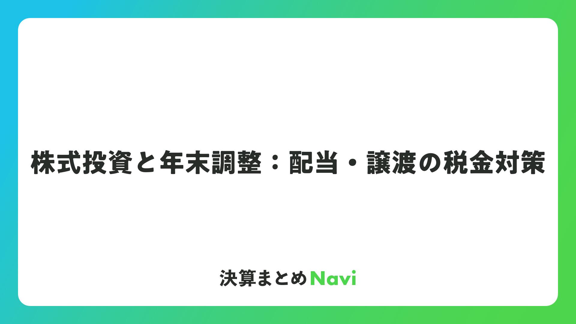 株式投資と年末調整:配当・譲渡の税金対策をまとめました