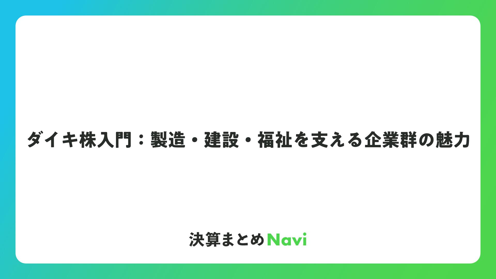 ダイキ株入門:製造・建設・福祉を支える企業群の魅力をまとめました