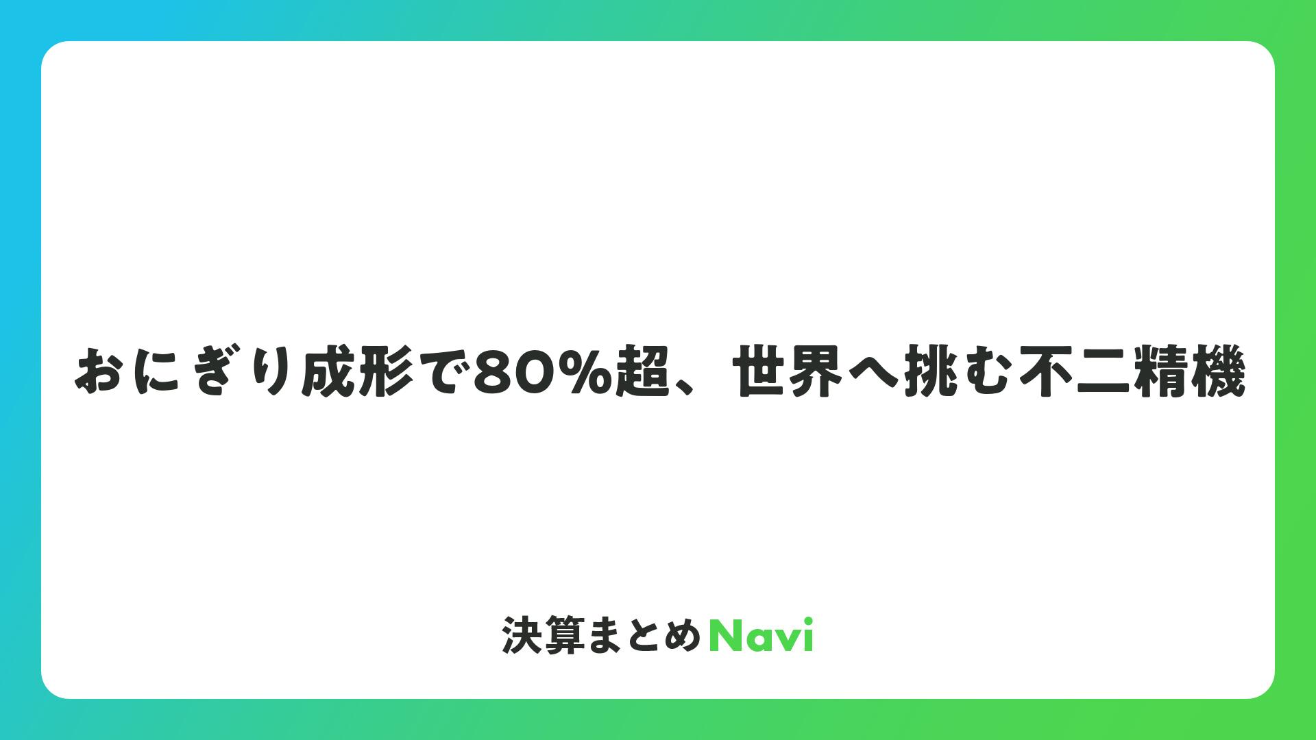 おにぎり成形で80%超、世界へ挑む不二精機をまとめました