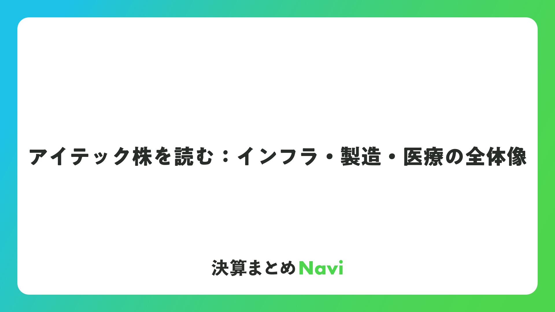 アイテック株を読む:インフラ・製造・医療の全体像をまとめました