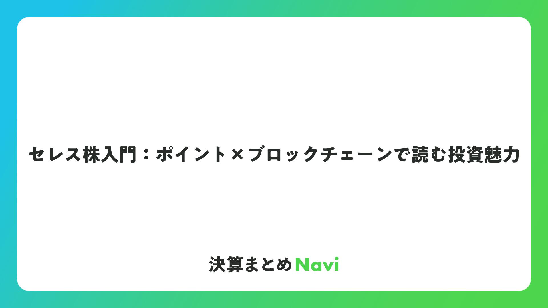 セレス株入門:ポイント×ブロックチェーンで読む投資魅力をまとめました