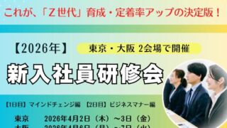 次世代型新入社員研修:Z世代の離職を防ぎ、定着率アップを実現する2日間集中プログラムを東京・大阪で募集開始 ニュースの要約「Z世代の離職を防ぐ」次世代型新入社員研修を東京・大阪で募集開始2日間集中プログラムで、Z世代の特性を理解し、定着率アップを実現企業の早期離職リスク低減や、新人の自信・主体性向上を目指す概要日本経営開発協会・関西経営管理協会は... ニュース: 2025.11.25 ニュース