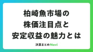 柏崎魚市場の株価注目点と安定収益の魅力とは 新潟県柏崎市に根ざす柏崎魚市場は、水産業の鮮魚卸売を主力とする上場企業として、株式投資家から注目を集めています。この企業は、地元漁港の豊かな海産物を活かし、安定した収益基盤を築いており、投資ポートフォリオに組み込む価値のある銘柄です。柏崎魚... 決算書: 2026.04.12 決算書