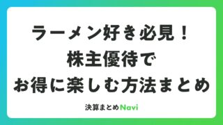 ラーメン好き必見!株主優待でお得に楽しむ方法まとめ 株式投資の醍醐味の一つが株主優待です。特にラーメン好きの投資家にとって、自社店舗で利用できる食事券や無料券がもらえる優待は、日常の楽しみを増幅させる魅力的な特典となっています。この記事では、ラーメン関連の株主優待を提供する主な企業を複数紹介... 決算書: 2026.04.12 決算書