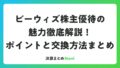 ビーウィズ株主優待の魅力徹底解説!ポイントと交換方法まとめ ビーウィズ(9216)は、株主の皆様に感謝の意を込めて導入している株主優待制度が注目を集めています。この制度では、毎年5月末時点で200株以上保有する株主様に対し、豊富な商品ラインナップから選べるプレミアム優待倶楽部ポイントを進呈。1ポイン... 決算書: 2026.04.12 決算書