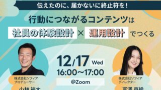 社員の体験設計×運用設計:伝えたのに、届かないに終止符を! 行動につながるコンテンツを ニュースの要約 社内報や社内ポータルサイトの情報発信コンテンツがなかなか届かない、行動につながらないという課題に対する解決策を提示 社員の共感や行動を引き出す「体験設計」と、継続的に浸透させる「運用設計」の視点から、伝わるコンテンツづく... ニュース: 2025.12.12 ニュース