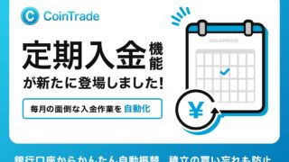 CoinTrade:暗号資産販売所「CoinTrade」で定期入金サービス開始のお知らせ ニュースの要約 株式会社マーキュリーは、「CoinTrade(コイントレード)」において定期入金サービスの提供を2025年12月10日より開始する 定期入金サービスにより、お客様の利便性が向上し、シームレスにサービスを利用できるようにな... ニュース: 2025.12.10 ニュース