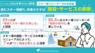 スキー場リピーター500名に緊急調査:約9割が「周囲でスキー・スノボ離れ進行」を実感も改善のヒントが ニュースの要約 85%超のスキー場リピーターが「周囲でスキー場離れを感じる」と回答 スキー場リピーターの80.6%が「スキー場の老朽化」を感じている スキー場の施設・サービスのリニューアルによって7割が「行く頻度が増える」と回答概要M... ニュース: 2026.02.08 ニュース