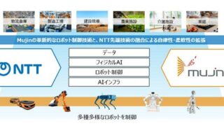 NTT・NTTドコモビジネス:MujinとのIO事業における資本業務提携について ニュースの要約 NTTグループとMujinが資本業務提携を締結し、通信・クラウド・AI技術とロボット制御技術を融合してフィジカルAI・ロボットの高度化を加速する MujinOSを活用してデジタル基盤とロボット技術を融合したソリューション... ニュース: 2025.12.03 ニュース