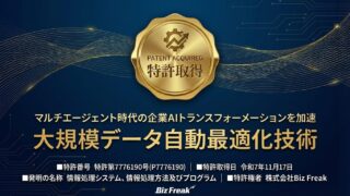 「大規模データ自動最適化技術」:マルチエージェント時代の企業AXを加速するBiz Freakの特許取得 ニュースの要約 株式会社Biz Freakが、企業が保有する大規模データをAIが扱いやすい形に自動で最適化し、AI活用の速度・精度・コストを改善する「大規模データ自動最適化技術」について特許を取得しました。 本技術は、企業のAI活用にお... ニュース: 2025.11.28 ニュース