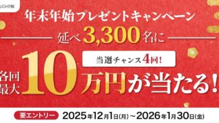 【みんなのFX】:12月1日より「最大10万円が当たる年末年始プレゼントキャンペーン」を開催! ニュースの要約 2025年12月1日から2026年1月30日まで「最大10万円が当たる年末年始プレゼントキャンペーン」を開催 期間中4回の抽選を行い、各回の入金と新規取引1回以上が必要 「みんなのFX」「LIGHT FX」... ニュース: 2025.11.29 ニュース