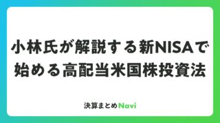 小林氏が解説する新NISAで始める高配当米国株投資法 株式投資の世界で注目を集める小林氏。彼の投資手法は、初心者から上級者まで幅広い投資家に支持されており、特に高配当株と新NISAを活用した長期運用が特徴です。この記事では、小林氏の投資哲学を株式投資・資... 決算書: 2026.03.09 決算書