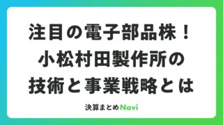 注目の電子部品株!小松村田製作所の技術と事業戦略とは はじめに電子部品業界において、次世代技術への対応と市場拡大が企業価値を左右する重要な要素となっています。本記事では、村田製作所グループの中核事業所として位置づけられている小松村田製作所の事業内容、技術力、そして投資家にとって注目すべきポイン... 決算書: 2026.03.09 決算書