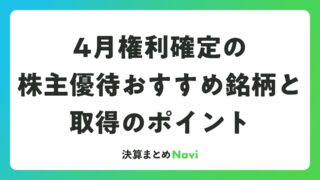 4月権利確定の株主優待おすすめ銘柄と取得のポイント 株式投資の魅力の一つが株主優待です。特に4月権利確定の銘柄は、春の新生活にぴったりの食事券や商品詰め合わせが多く、長期保有を考える投資家に人気を集めています。この記事では、2026年の4月権利確定銘柄を中心に、権利獲得のタイミングやおすすめ... 決算書: 2026.02.25 決算書