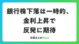 銀行株下落は一時的、金利上昇で反発に期待 銀行株の下落は一時的な調整局面であり、金利上昇や円安進行といった長期的な追い風を背景に、株式投資家にとって魅力的な投資機会を提供しています。この記事では、銀行株下落の背景を整理しつつ、読者の皆さんが資産運用で活用できるポジティブなポイントを... 決算書: 2026.02.25 決算書