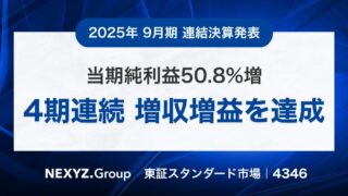 株式会社NEXYZ.Group: 2025年9月期 連結決算発表 – 当期純利益50.8%増で4期連続の増収増益を達成 ニュースの要約2025年9月期の連結決算を発表し、4期連続の増収増益を達成エンベデッド・ファイナンス事業とメディア・プロモーション事業が業績を牽引2026年9月期には5期連続の増収増益を目指す概要株式会社 NEXYZ.Group は、202... ニュース: 2025.11.15 ニュース