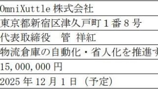 【HOUSEI】:子会社設立に関するお知らせ ニュースの要約 HOUSEIは新加坡赢宝智能科技私人有限公司と共同で子会社「OmniXuttle株式会社」を設立 少子高齢化による物流業界の人手不足に対応するため、コストパフォーマンスに優れた自動化製品・サービスを提供 HOUSEIは... ニュース: 2025.11.14 ニュース