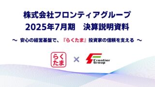 「らくたま」:フロンティアグループ、2025年7月期 決算説明資料を公開――「堅実な経営基盤で、『らくたま』投資家の信頼を支える」―― ニュースの要約 2025年7月期に売上高71億円、経常利益7億円、当期純利益4億円を計上 自己資本比率が20%まで上昇し、堅実な財務基盤を確立 賃料収入が年間5億円(前年比+2億円)と、安定収益基盤をさらに強化概要不動産クラウドファン... ニュース: 2025.11.08 ニュース