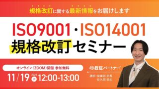 【ISO9001・ISO14001規格改訂動向解説セミナー】:2026年1月・9月改訂予定のISO9001・ISO14001の最新動向を解説! 規格改訂に向けた企業の実務・準備ステップとは ニュースの要約 ISO9001とISO14001の規格改訂が2026年1月と9月に予定されている 2024年2月にはISO規格への「気候変動への配慮」の追加改正が行われる 規格改訂への対応について、専門家による解説と企業向けの準備ポイ... ニュース: 2025.11.06 ニュース