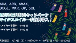 暗号資産取引所:【ADA, ARB, AVAX, DOGE, MKR, OP, SOL】取引手数料割引キャンペーン!マイナスメイカー手数料導入! ニュースの要約 オーケーコイン・ジャパン株式会社は、7月7日の七夕を祝して「取引手数料割引キャンペーン」を開催。 7銘柄(ADA、ARB、AVAX、DOGE、MKR、OP、SOL)の取引手数料を大幅に値下げ。 取引量に関わらず、メイカ... ニュース: 2025.07.07 ニュース
