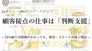組織行動科学(R):顧客接点の仕事は「判断支援」 ニュースの要約 顧客接点の仕事は「判断支援」であり、「早く決めさせる」だけではなく、顧客が自社として判断できる状態をつくる必要がある。 時間をかけても取引・リピートが続く理由は、顧客が判断できる状態になるまで時間をかけることで、... ニュース: 2025.12.21 ニュース