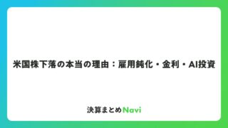 米国株下落の本当の理由:雇用鈍化・金利・AI投資 米国株式市場は、さまざまな要因が絡み合う中で下落局面を迎えることがあります。この記事では、米国株式の下落理由として挙げられる主な経済的・企業的な背景を、複数の視点から詳しく解説します。市場の動きを理解することで、日常のニュースをより深く読み... コラム: 2026.02.08 コラム
