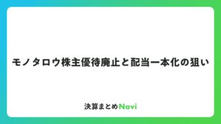 モノタロウ株主優待廃止と配当一本化の狙い モノタロウの株主優待制度の現状業務用ネットストアを運営する株式会社モノタロウ(証券コード:3064)は、かつて魅力的な株主優待制度を実施していました。しかし、2025年1月31日に重要な発表がありました。2024年12月31日を基準日とした... コラム: 2026.02.08 コラム