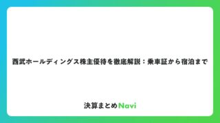 西武ホールディングス株主優待を徹底解説:乗車証から宿泊まで 西武ホールディングス株主優待とは西武ホールディングスの株主優待は、同社の株式を保有する株主に対して提供される特典制度です。この制度は、西武グループの運営する交通機関や施設を利用する際に活用できる多様な優待内容が特徴となっています。株主優待の... コラム: 2026.02.08 コラム